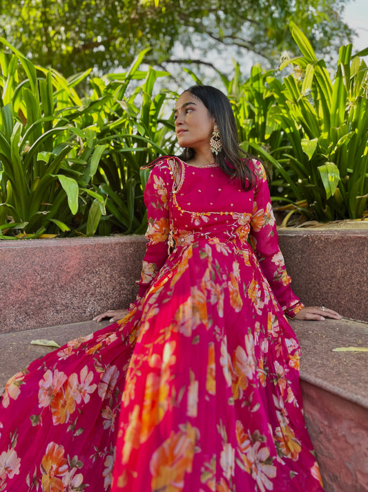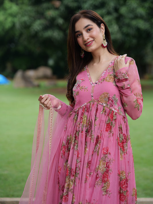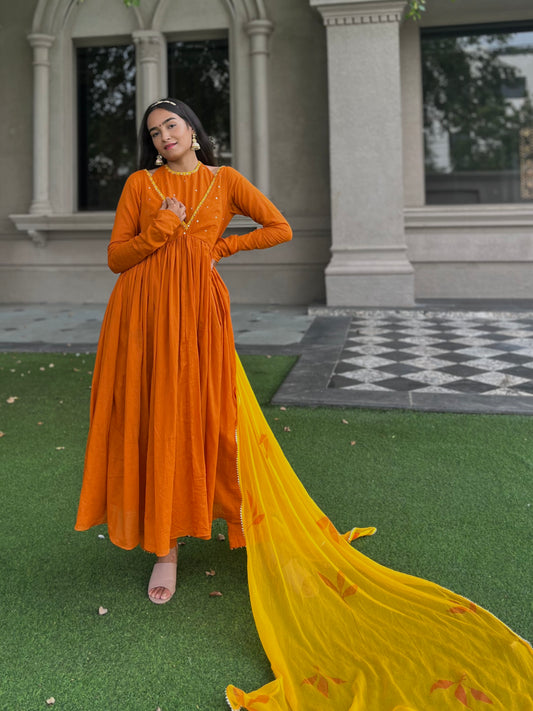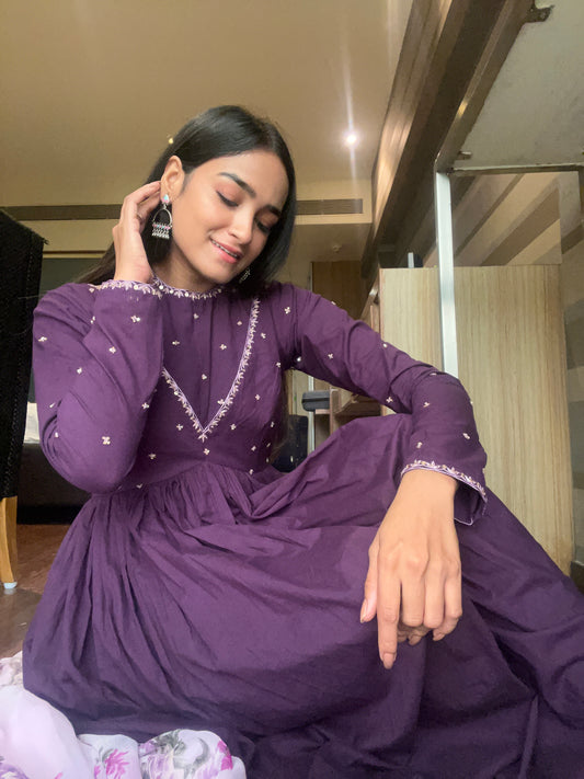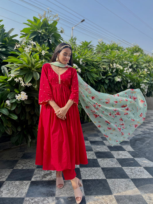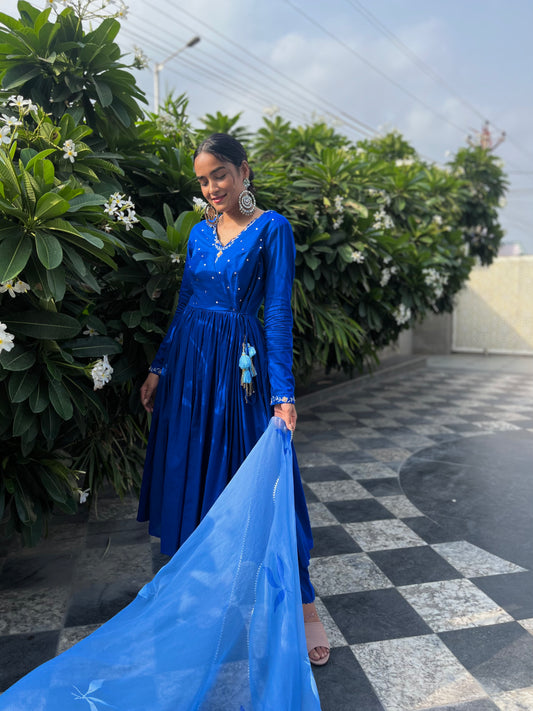 Bright Cobalt Blue Hand Embroidered Anarkali Set