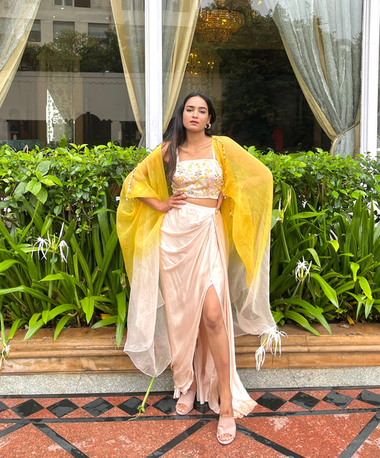 Champagne drape skirt set