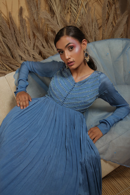 Bright Cobalt Blue Hand Embroidered Anarkali Set