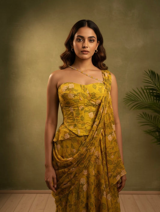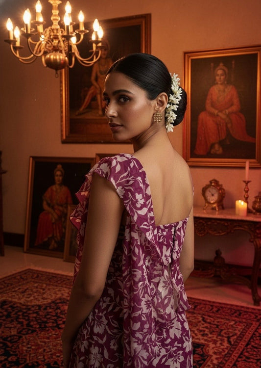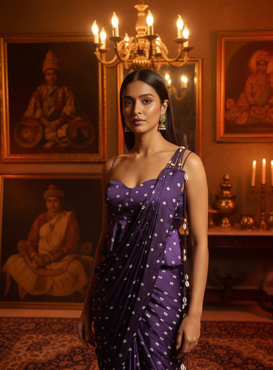 Plum Mini peplum Drape Saree