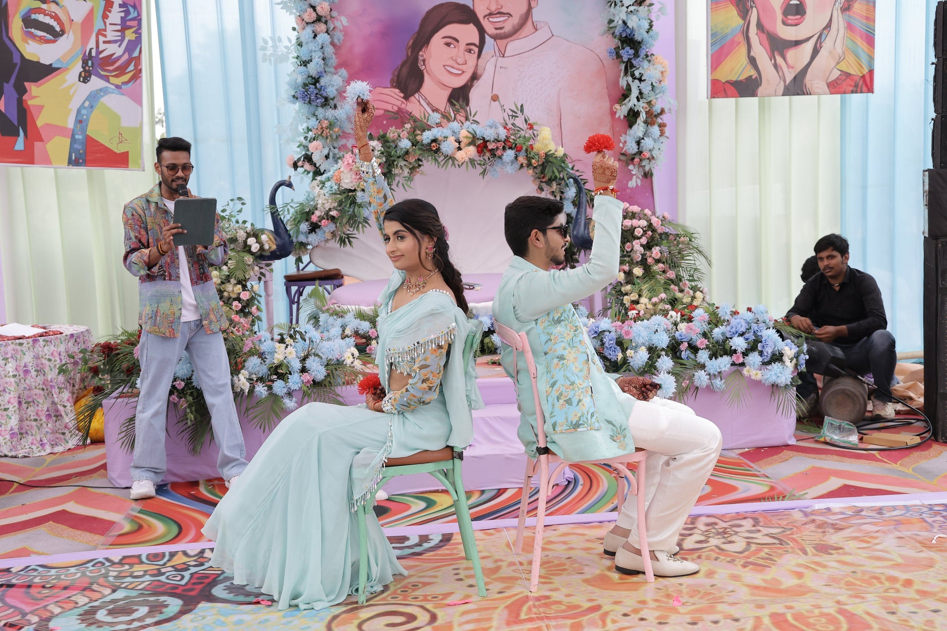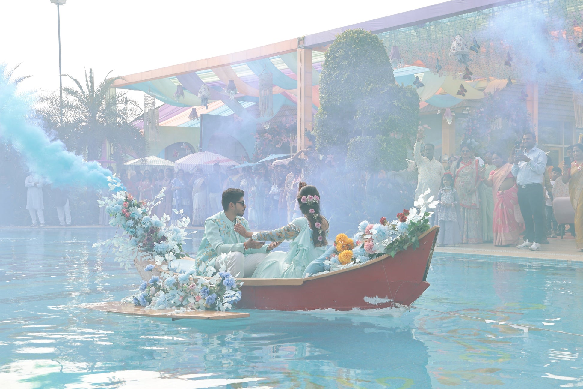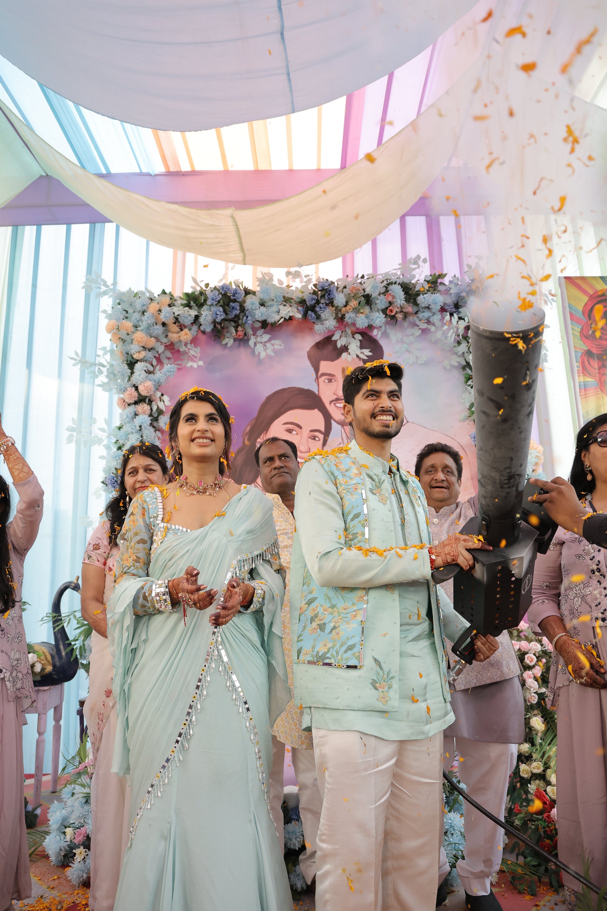 Pre- Drape ruffle saree with hand embroidered Blouse