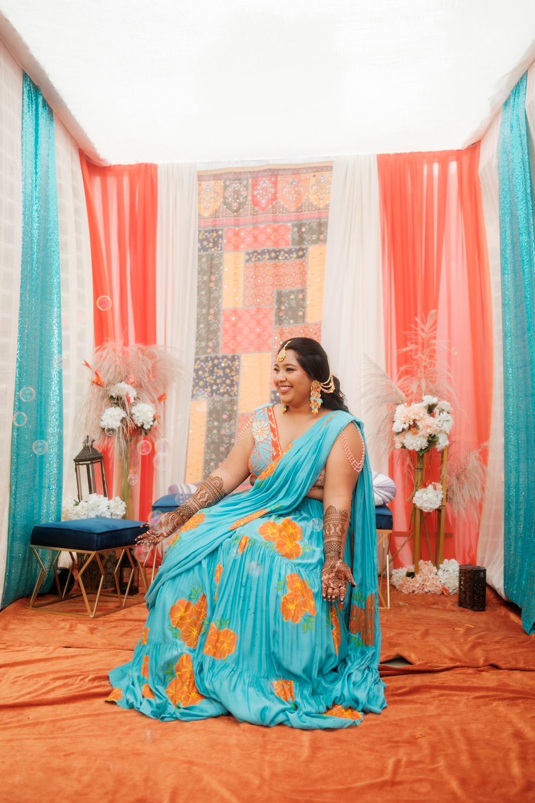 Three tier hand painted lehengas with embroidered blouse and drape dupatta